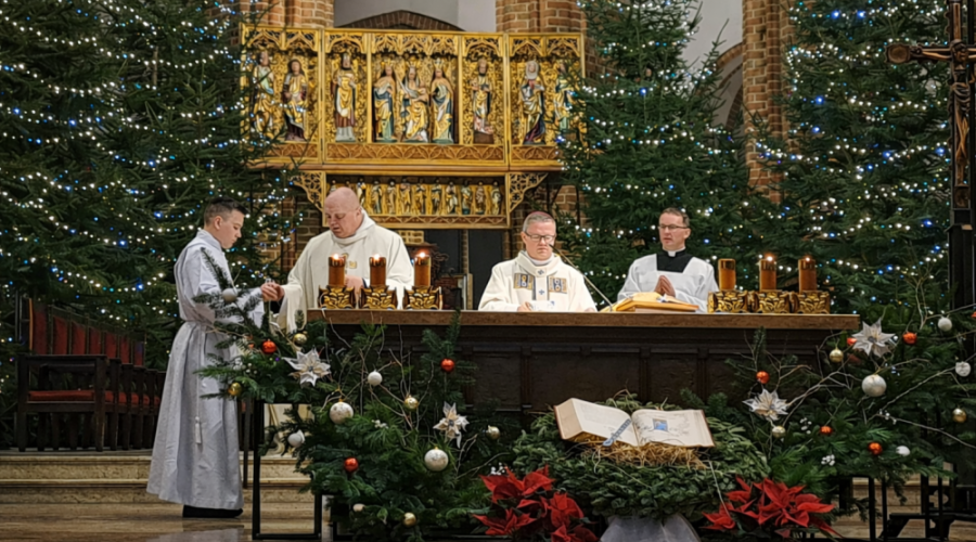 1 stycznia 2026 roku w Bazylice Archikatedralnej w Szczecinie odbyła się uroczysta Msza Święta noworoczna z prośbą o Boże błogosławieństwo na cały nadchodzący rok. Liturgii o godz. 18.00 przewodniczył Ksiądz Arcybiskup Wiesław, gromadząc licznie przybyłych wiernych. Po zakończeniu Eucharystii uczestnicy pozostali na wyjątkowym noworocznym koncercie kolęd. Wystąpiły chóry: Słowiki 60 im. Jana Szyrockiego oraz Szczeciński Chór Katedralny, wprowadzając zgromadzonych w podniosły i radosny nastrój początku Nowego Roku.