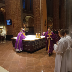Podczas obrzędu posypania głów popiołem arcybiskup osobiście udzielał wiernym tego wymownego znaku pokuty i przemijania. W katedrze licznie zgromadzili się wierni, którzy wspólnie rozpoczęli czas duchowego przygotowania do Świąt Zmartwychwstania Pańskiego, powierzając Bogu swoje intencje i wielkopostne postanowienia.